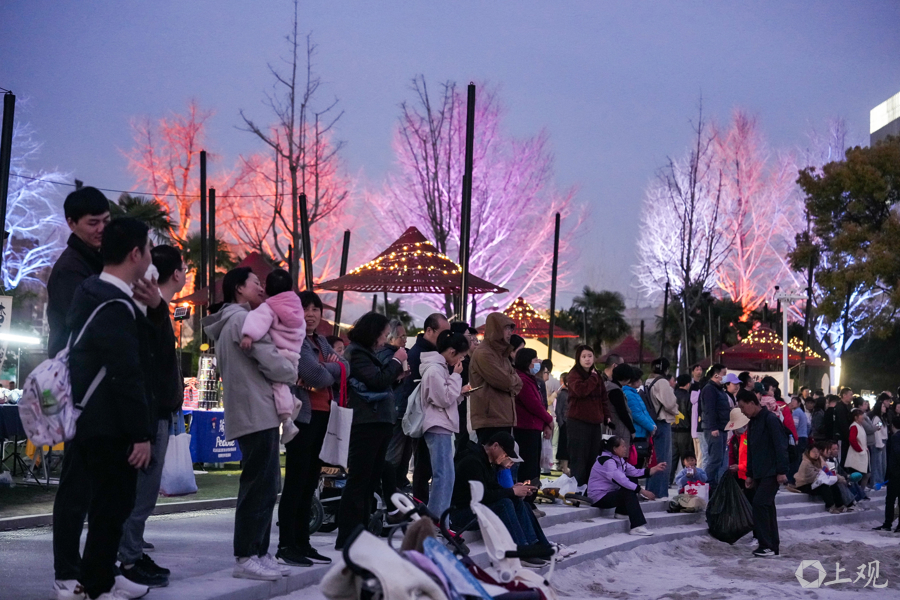 扮演以科技翻新点亮阔绰场景。无东说念主机编队在空中及时组合呈现“花朝职权包”二维码图案,现场搭客昂首即可扫码领取。大宁公园联动大宁音乐广场、上海久光中心、大宁海外贸易广场、大融城四大“花朝分会场”,推出254项吃喝游购娱一站式专属优惠,让端淑天幕与实景福利同频共振。