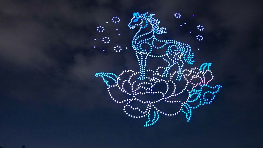 昨晚,千架无东说念主机以夜空为幕、以流光为笔,顺次呈现骏马奔腾、月下花神、十二花影顺次绽开、似锦锦束、花船漾湖、音乐喷泉等公园代表性地标以及大宁功能片区要点产业等画面,将千年花朝古韵与当代科技、城市活力无缺息争,带来轰动东说念主心的千里浸式视听盛宴。