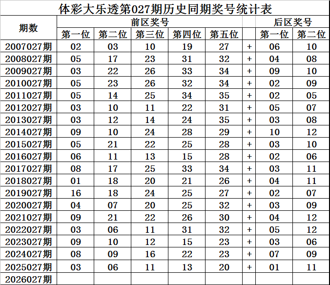 王守礼体彩大乐透第2026027期历史同时定位升重降号码分析: