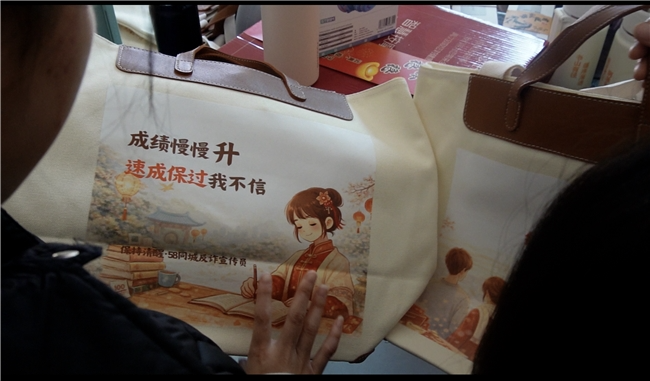 为此,她给常年赶集卖竹编的爷爷准备了户外帽、折叠椅和保温杯;妈妈爱喝茶,她把反诈提醒分散印在茶具上;爸爸常开车、聊理财,保温杯和车载按摩枕成了高频“提醒位”;而自己的帆布包,则成了“嘴替”,用玩笑话回应那些关于学习、工作、感情的追问。