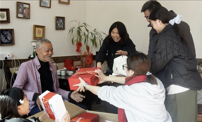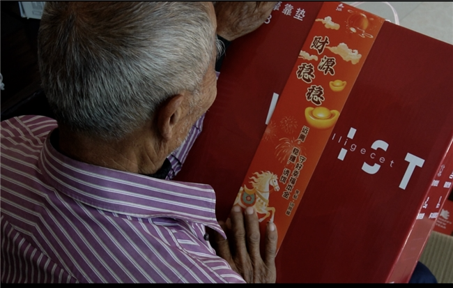 礼物拆开后,80岁的爷爷拿着反诈年贴看了很久,说了一句:“这个比春联实在。”
