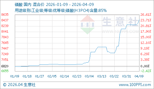 华泰优配磷酸04月09日最新价钱8470.00元/吨,最近10天上升4.09%,20天上升16.03%,60天上升22.75%,90天上升24.19%。